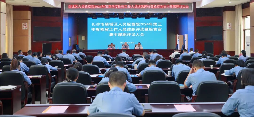 为充分发挥考核的导向激励作用,根据述职评议工作相关文件精神,10月10日上午,望城区检察院召开2024年第三季度检察人员述职评议大会。会议由院党组副书记、副检察长李磊主持,长沙市检察院政治部副主任周玉才,望城区人大监察和司法委主任委员王卫军率履职评议工作组到会指导。