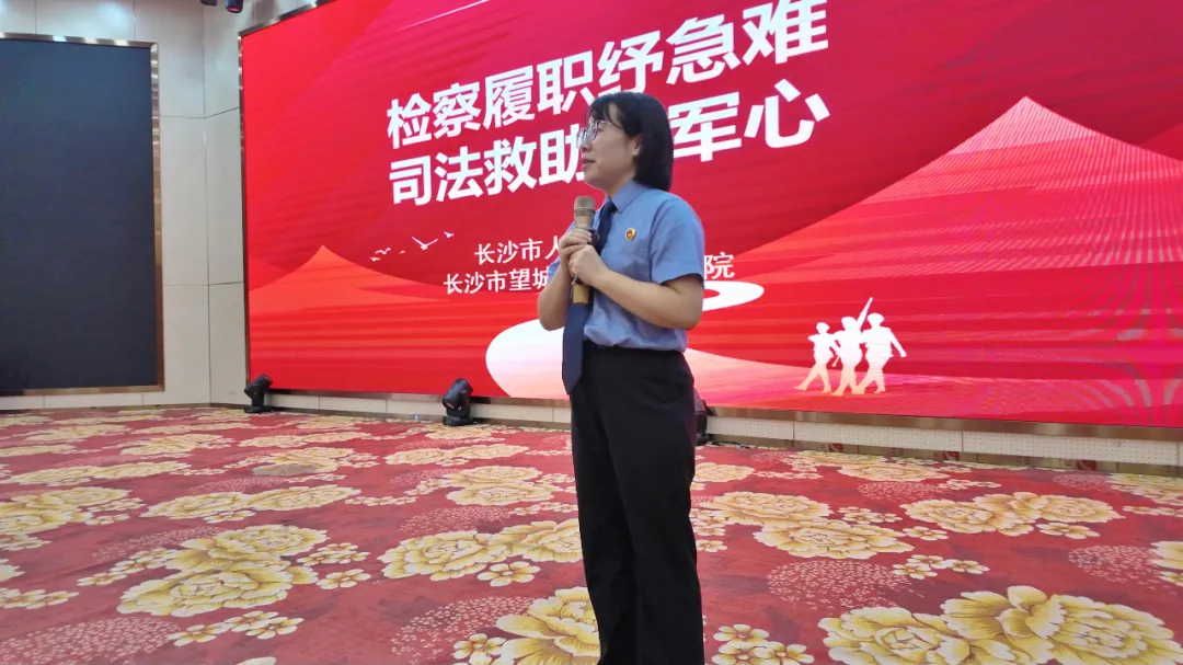 “战友们,当军属或退役军人的权益受到侵害却难以获得赔偿时,请记住,司法救助是你们坚实的后盾!”望城区检察院控告申诉检察部主任龚琳从与每个官兵息息相关的话题入手,以“检察履职纾急难,司法救助暖军心”为主题,开启了当天的讲座。