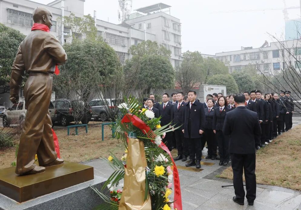 今年3月5日是第61个“学雷锋纪念日”,为缅怀革命烈士,铭记雷锋精神,全面建设“雷锋式检察院”,望城区检察院举行向雷锋同志铜像献花仪式。院党组书记、检察长黄中玮参加仪式并讲话,号召全体检察人员做雷锋精神的学习者、传播者、践行者,以实际行动投身“雷锋式检察院”建设。仪式由院党组副书记、副检察长李磊主持,全体院领导及青年干警参加。献花仪式在庄严肃穆的国歌声中开始。伴随着《献花曲》的旋律,全体人员向雷锋铜像敬献鲜花。院党组书记、检察长黄中玮上前整理花篮缎带,全体人员面向雷锋铜像三鞠躬。